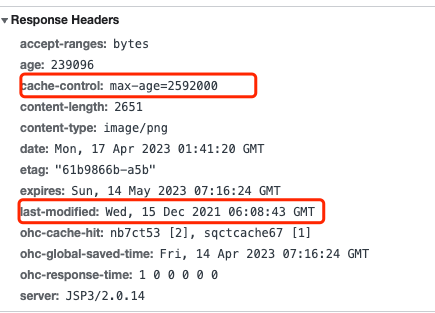 第一次访问页面,浏览器会根据Response Header来判断是否对资源进行缓存, 如果响应头中有 cache-control: max-age=2952000 或 expires 字段,代表该资源是强缓存